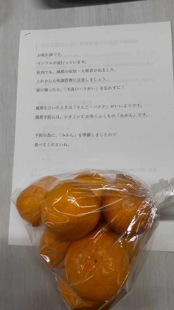 みんなには、風邪予防にいい食べ物を書いた紙を
